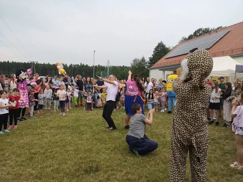 Otwarcie placu zabaw było również dobrą okazją do zorganizowania Dnia Dziecka. Na najmłodszych czekały liczne atrakcje, gry i zabawy oraz słodki poczęstunek przygotowany przez wilkszyńskie Koło Gospodyń.