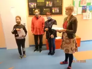 Nagrodzeni otrzymali dyplomy i słodycze ufundowane przez organizatorów oraz gratulacje od pani Dyrektor Lidii Walerych i członków Jury.