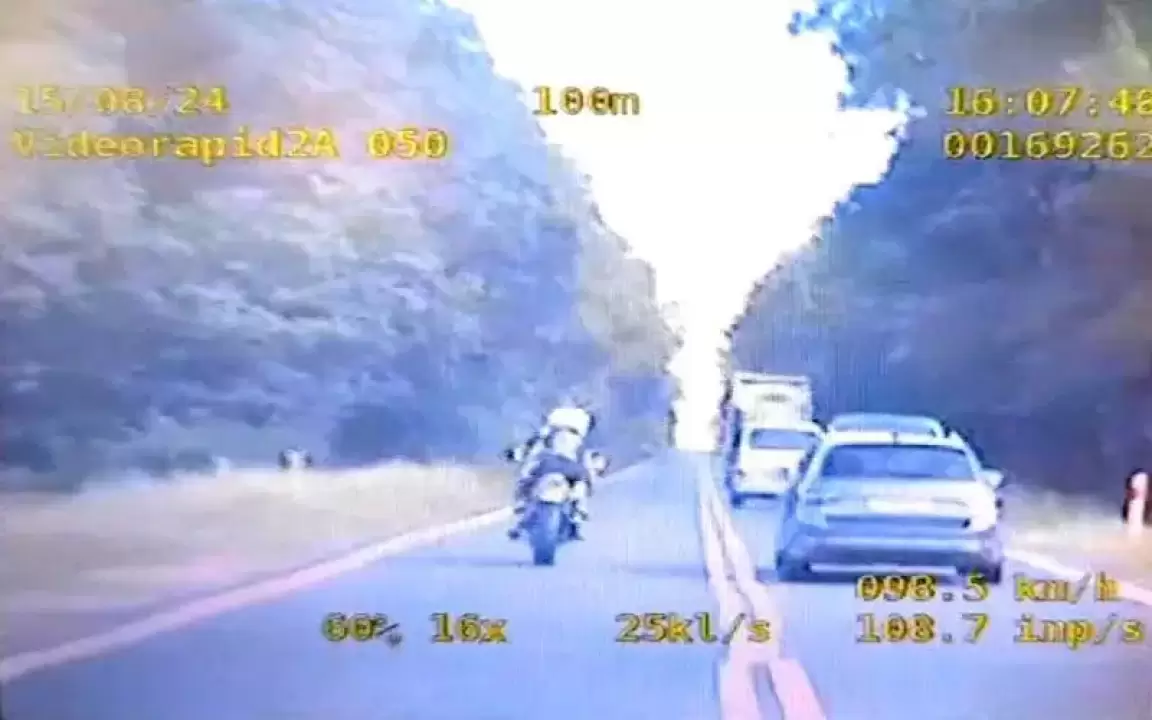 Podczas patrolu dróg powiatu średzkiego uwagę Policjantów zwrócił kierujący jednośladem, który nie zważając na obowiązujące znaki drogowe, brawurowo wyprzedzał poprzedzające go samochody. Policjanci niezwłocznie podjęli pościg włączając sygnały świetlne i dźwiękowe o zmiennym tonie, aby zatrzymać kierującego. To jednak nie przyniosło zamierzonego skutku, a kierowca w dalszym ciągu stwarzał zagrożenie nie tylko dla siebie, ale i dla pasażerki, którą przewoził. Dopiero zajechanie drogi mężczyźnie doprowadziło do jego zatrzymania.