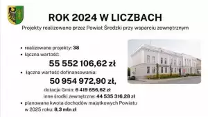 Jednym z punktów grudniowej sesji była informacja o pozyskanych środkach zewnętrznych. Raport przygotowała kierownik wydziału promocji Agnieszka Pichowicz i zgodnie z nim w minionym roku Powiat realizował 38 projektów o łącznej wartości 55,5 mln zł i dofinansowaniu wynoszącym ponad 50 mln zł.