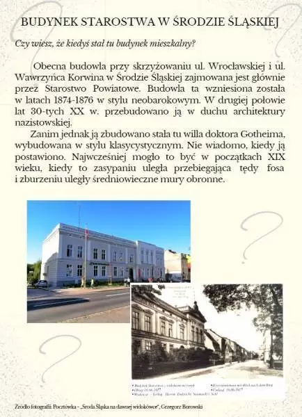 Dzięki uprzejmości Muzeum Regionalnego w Środzie Śląskiej od dzisiaj załatwiając urzędowe sprawy lub po prostu spacerując po korytarzach starostwa można pogłębić swoją wiedzę na temat Środy Śląskiej.
