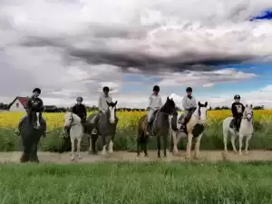 Pani Karolina z trenerami prowadzi jazdy konne dla osób początkujących (lonże), średniozaawansowanych (zastępy, tereny) i zaawansowanych (zastępy, tereny, jazdy ujeżdżeniowe i skokowe). Możliwe są jazdy zarówno indywidualne, jak i grupowe. Do dyspozycji jeźdźców jest piaszczysta ujeżdżalnia, kryta hala do jazdy konnej i zestaw przeszkód parkurowych.