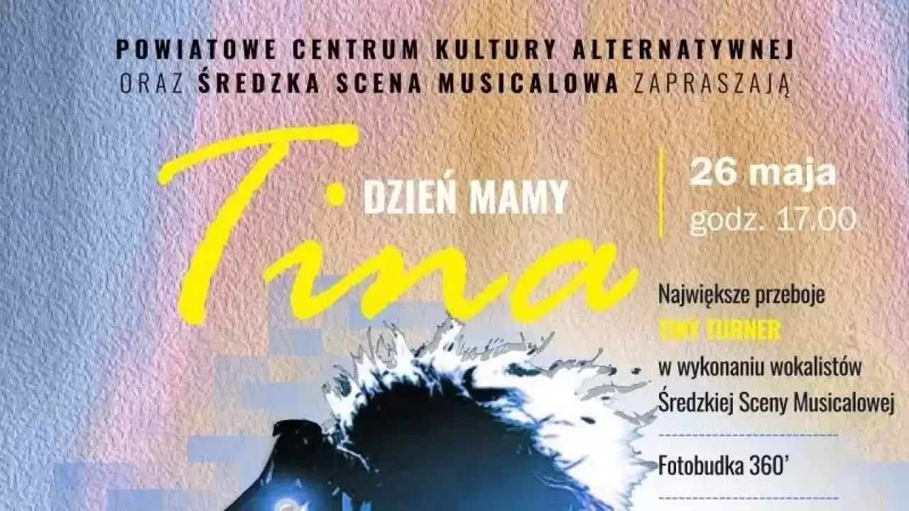 Największe przeboje Tiny Turner w wykonaniu Średzkiej Sceny Musicalowej, słodki bufet, fotobudka 360°, konkursy z nagrodami - atrakcji w trakcie Dnia Mamy w Powiatowym Centrum Kultury Alternatywnej nie zabraknie, więc nie nie warto zwlekać z zakupem biletów!