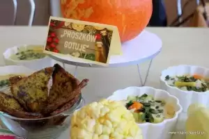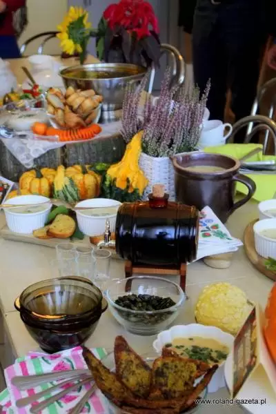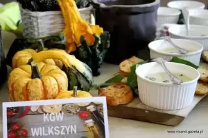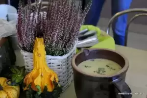 Nietypową, bo tajską przygotowały panie ze Stowarzyszenia Mój Szczepanów. Ugotowana na bazie mięsa drobiowego z dodatkami cukini, papryki i odrobiną curry, zabielona mleczkiem kokosowym, skradła serca smakoszom dań ostrych. Kolejną wymyślną jarzynówkę ugotowało Koło Gospodyń Średzkich. Była to bezglutenowa zupa - krem. Czterokolorowa potrawa ("Cztery pory roku") przyciągała wzrok, bo w końcu podobno człowiek też "je oczami". Na stole nie zabrakło jesiennych dekoracji oraz przygotowanych waz z królowej jesieni - dyni.