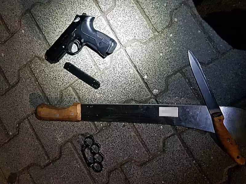 Ponadto w pojeździe policjanci ujawnili maczetę, wiatrówkę z magazynkiem oraz sprzączkę do paska w kształcie kastetu. Mężczyźni nie potrafili wytłumaczyć, do czego służą im wymienione przedmioty.
