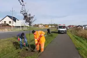 Ścieżkę przy ul. Chrobrego w Brzezinie ozdobiło ponad 70 nowych drzew, wśród których znalazły się takie odmiany jak magnolie, jabłonie, śliwy wiśniowe oraz wiśnie piłkowane. Powiatową służbę drogową tym razem osobiście wsparli przedstawiciele urzędu - starosta Krzysztof Szałankiewicz i wicestarosta Sebastian Burdzy.