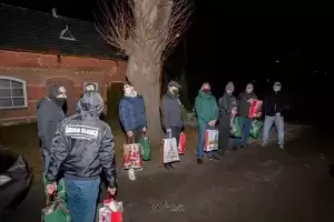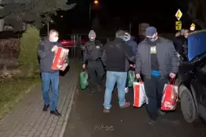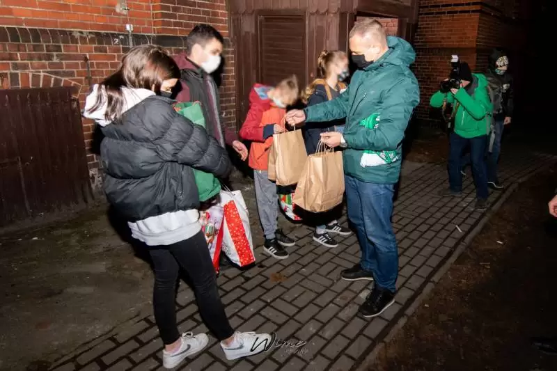 Kibice zebrali się krótko po godz. 17.00 pod ośrodkiem, dzieci czekały już w oknach. Przypominało to dawne wyczekiwanie na pierwszą gwiazdkę. Po wyładowaniu paczek z samochodów, zaskoczyło mnie jak dużo udało się przygotować Mikołajowi. Przekazanie prezentów z powodu reżimu sanitarnego początkowo nie miało tej atmosfery jak w poprzednich latach, ale to chyba dotknie nas wszystkich w te święta. Do odebrania paczek wyszła wybrana delegacja składająca się ze starszych dzieciaków, wszystko to ze względów pandemicznych. Dystans społeczny i maseczki nie ukryły wielkiej radości wszystkich zgromadzonych, spod maseczek widać było szerokie uśmiechy zarówno dzieci jak i kibiców.