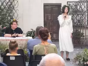 “Noc Kupały” rozpoczęła się od krótkiego wykładu, w trakcie którego adiunkt muzealny Anna Celuch wyjaśniła pochodzenie tej nazwy i przybliżyła tradycje nocy świętojańskiej. Opowiedziała o istotnej roli wody i ognia w ludowych obrzędach, a także o mitycznym kwiecie paproci. Aby łatwiej przyswoić dużą ilość wiedzy, w trakcie wykładu miały miejsce przerywniki muzyczne. Klimatyczne piosenki prezentowała Ania Staranowicz z Wrocławia.