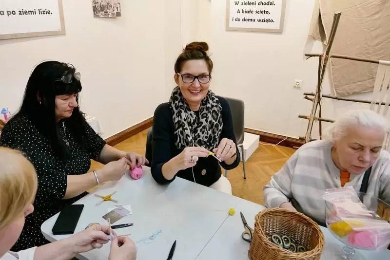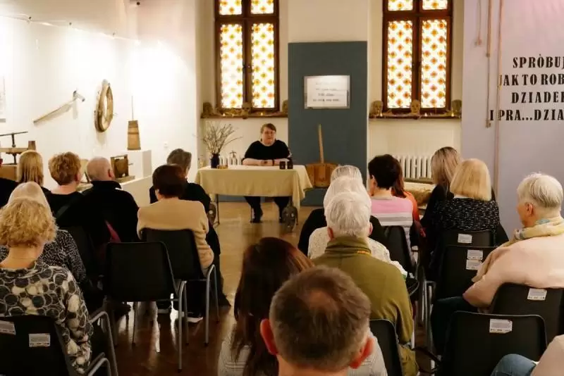Po południu w sali wystaw czasowych odbył się kolejny z cyklu wykład muzealny. Tym razem adiunkt muzealny Anna Celuch przybliżyła temat Dziadów Wiosennych, czyli obrzędów poświęconych przodkom oraz związanych z kultem zmarłych. Spotkanie zakończyło się warsztatami robienia ozdobnych pająków oraz zaskakująco pyszną, dziadowską ucztą.