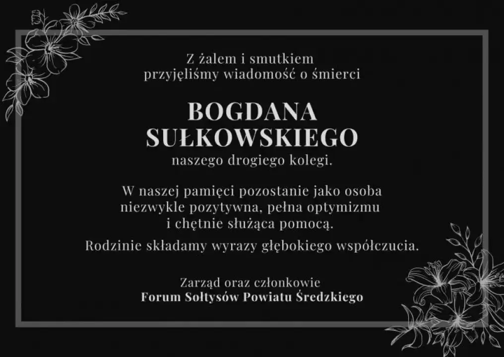 Kondolencje dla rodziny Śp. Bogdana Sułkowskiego