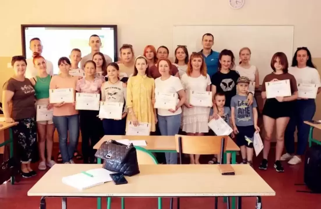 Zakończył się trwający blisko trzy miesiące kurs języka polskiego dla obywatelek i obywateli Ukrainy. Wczoraj uczniowie z rąk nauczycielki Oksany oraz przedstawiciela powiatu odebrali stosowne certyfikaty.