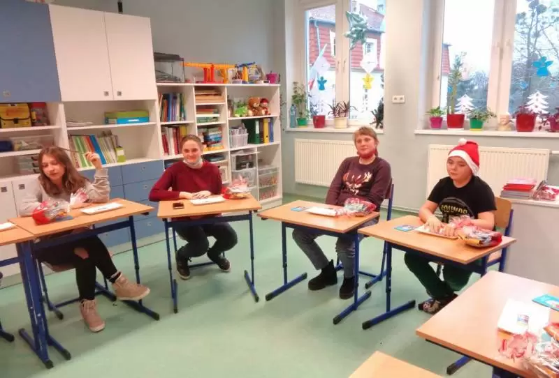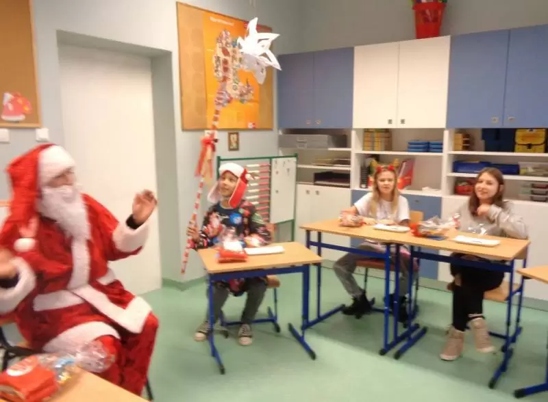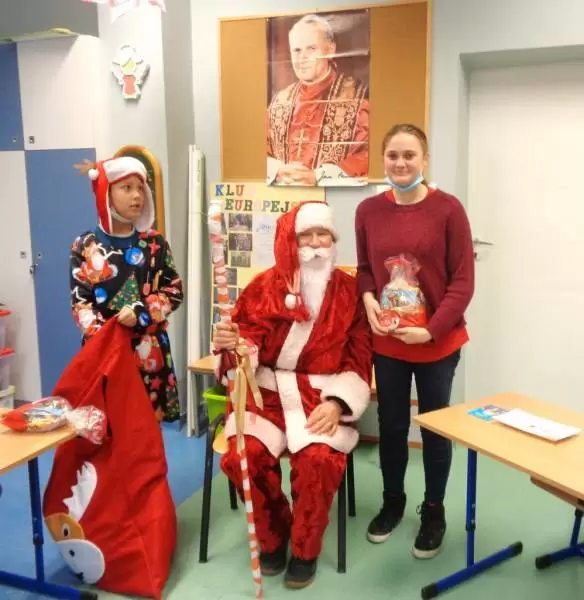 Spotkanie przebiegło w miłej atmosferze i było inną formą świętowania szkolnych mikołajek. O podarunki i uśmiech na twarzach młodych lingwistów zadbali pani Ewa Ek i pan Paweł Wenderski, nauczyciele z Ośrodka.