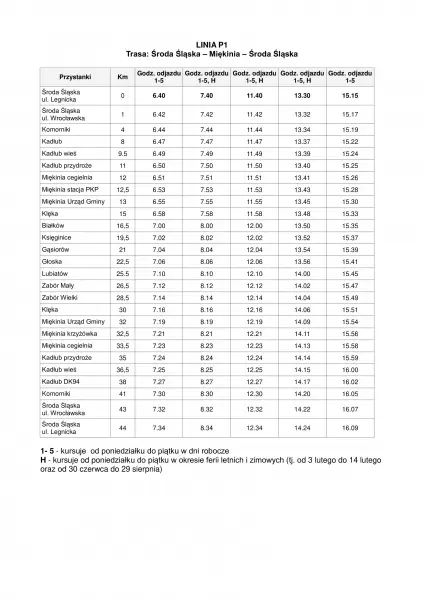 LINIA P1 Środa Śląska – Miękinia – Środa Śląska