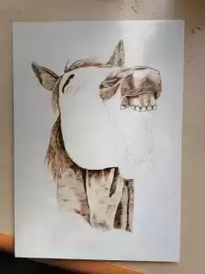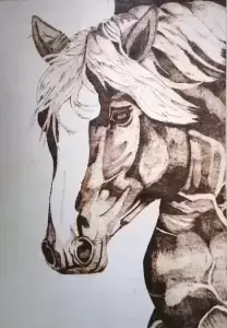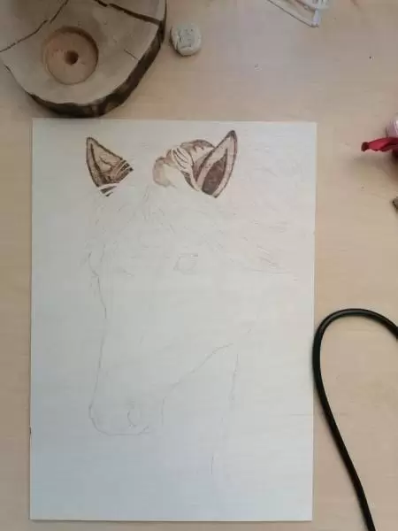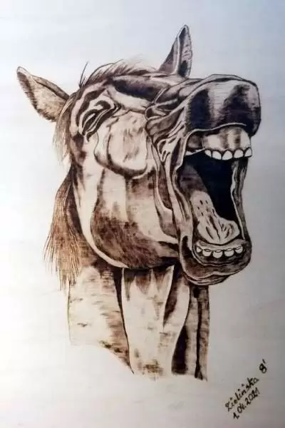 Na taką technikę “malowania” natknęła się na Facabooku, na jednej z grup poświęconej koniom. Bardzo spodobała jej się podkładka pod kubek z wypalonym rumakiem. Postanowiła dowiedzieć się z czym się to wszystko wiąże i bardzo ją to wciągnęło. W pani Eli już od gimnazjum tkwiła artystyczna dusza, zajmowała się wtedy szkicowaniem sylwetek koni, więc zaczynając swoją przygodę z pirografią nie była zupełnym laikiem. Mimo to, jak sama mówi, wciąż się uczy. Aby obraz wyszedł dobrze należy poświęcić mu bardzo wiele godzin ciężkiej pracy, jeden zły ruch pirografem i cała praca na marne.