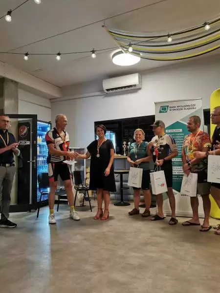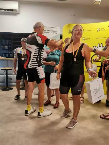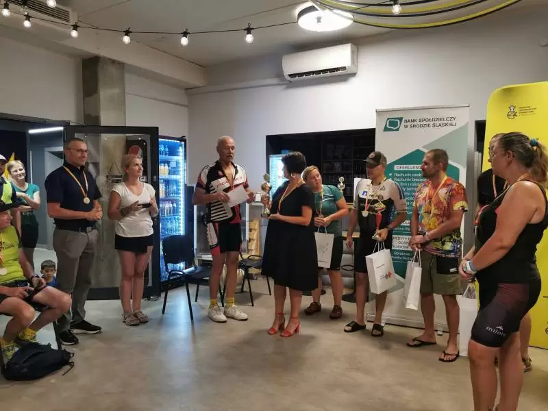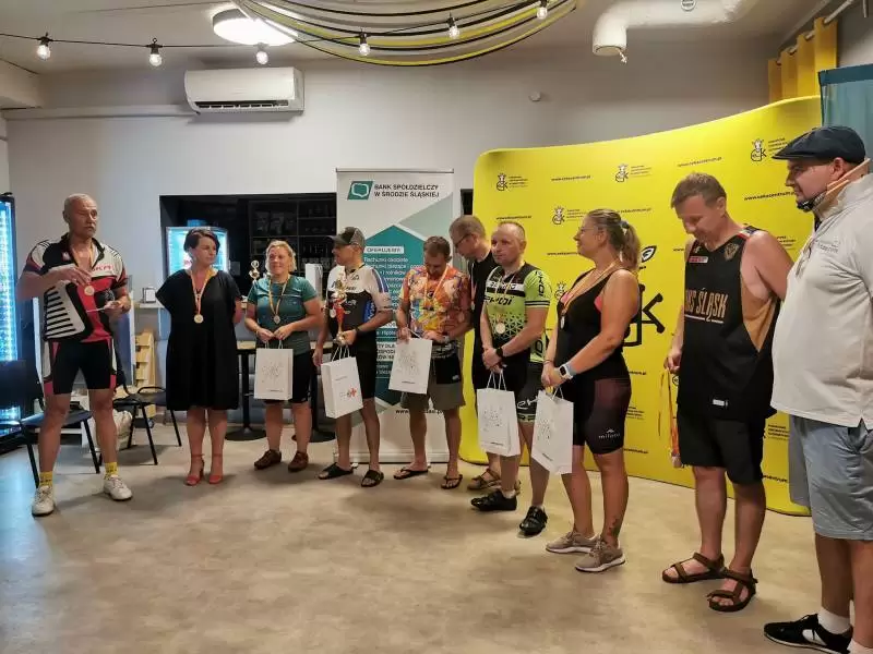 Na zakończenie trasy na wszystkich uczestników czekały pamiątkowe medale. Dodatkowo najlepsza trójka w kategorii mężczyzn i kobiet otrzymała vouchery od laboratoriów “Diagnostyka” w Środzie Śląskiej. Z kolei puchary dla zawodnika, który przejechał największą liczbę pętli, a także najstarszego i najmłodszego z największą liczbą kilometrów, ufundował Bank Spółdzielczy w Środzie Śląskiej.