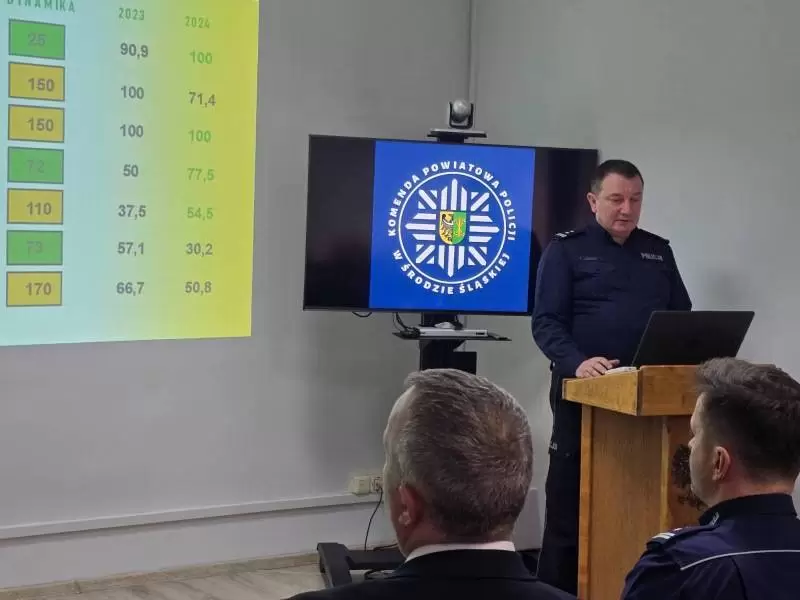 20 lutego 2025 roku w sali odpraw Komendy Powiatowej Policji w Środzie Śląskiej odbyła się odprawa roczna podsumowująca stan bezpieczeństwa na terenie powiatu średzkiego oraz efekty pracy funkcjonariuszy w 2024 roku. W odprawie udział wzięli - Zastępca Komendanta Wojewódzkiego Policji we Wrocławiu inspektor Tomasz Jędrzejowski, przedstawiciele władz samorządowych i prokuratury, a także kadra kierownicza Komendy Powiatowej Policji w Środzie Śląskiej.