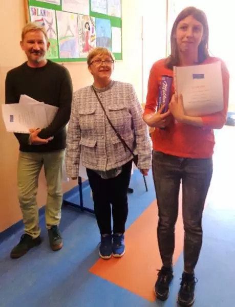 Nagrody i dyplomy wręczyli opiekunowie Klubu Europejskiego – Ewa Ek i Paweł Wenderski. Upominki ufundowała pani Ewa.