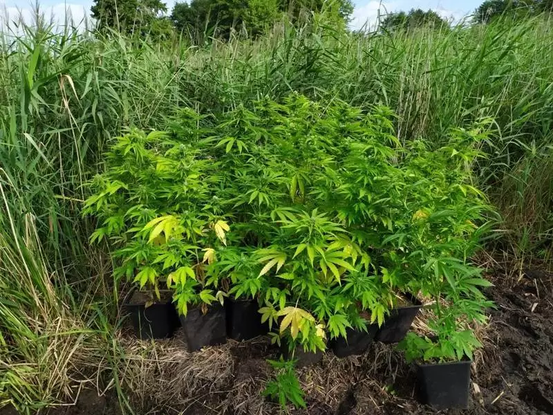 Średzcy policjanci, wspólnie z funkcjonariuszami Komendy Wojewódzkiej Policji we Wrocławiu zatrzymali sprawców na gorącym uczynku w momencie, kiedy przyszli doglądać rośliny. Zabezpieczono łącznie 121 krzewów, które znajdowały się w doniczkach usytuowanych na wykarczowanych fragmentach podmokłego terenu, a także środki do wzrostu roślin.
