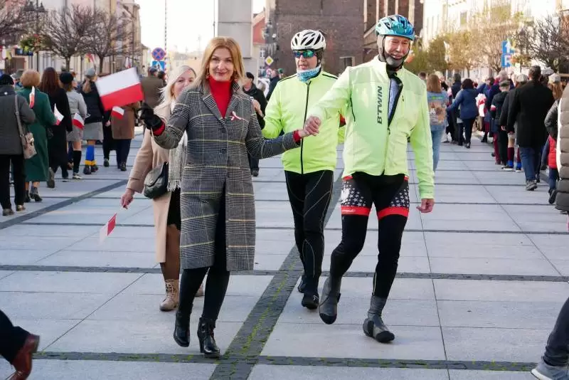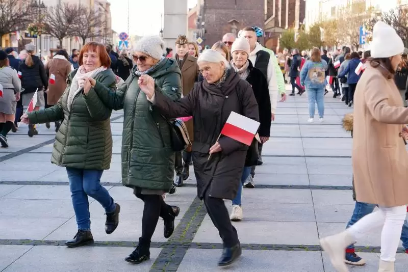 Obchody na rynku zakończył radosny i wielopokoleniowy Polonez dla Polski. Kolumnę poprowadziły panie z zespołu Niepierzynki z Mrozowa, a wśród tańczących znaleźli się samorządowcy, seniorzy, emeryci, radni, żołnierze, dyrektorzy jednostek, kolarze oraz najmłodsi mieszkańcy miasta z rodzicami. Bardzo chcieliśmy świętować ten dzień wspólnie i dzięki Wam to się udało!