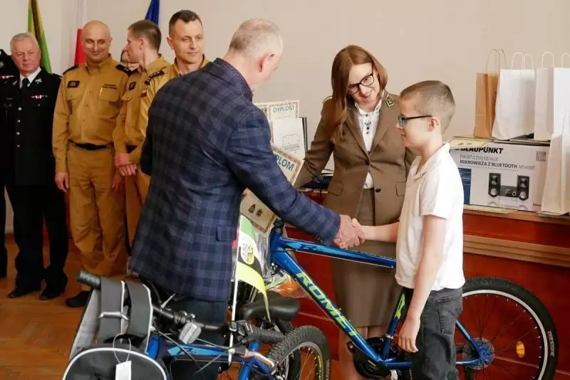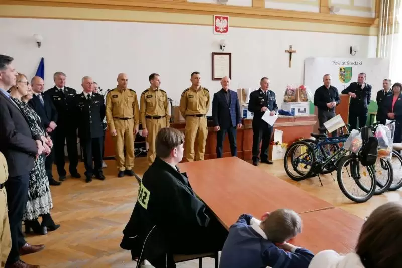 Zwycięzcy każdej kategorii otrzymali w nagrodę nowe rowery, ufundowane przez trzy instytucje - Powiat Średzki, Gminę Środa Śląska oraz Nadleśnictwo Miękinia. Dyplomy i upominki wręczyli przedstawiciele lokalnych władz, komendy powiatowej PSP oraz zarządu powiatowego związku OSP.