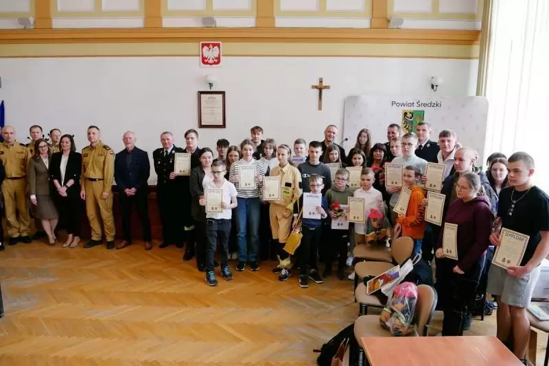 W ubiegły piątek w sali konferencyjnej średzkiego starostwa spotkali się uczniowie, którzy wzięli udział w powiatowym etapie turnieju o wiedzy pożarniczej. Uczestnicy musieli wykazać się wiedzą z zakresu przepisów przeciwpożarowych, zasad postępowania na wypadek pożaru i innych zagrożeń oraz z historii straży.