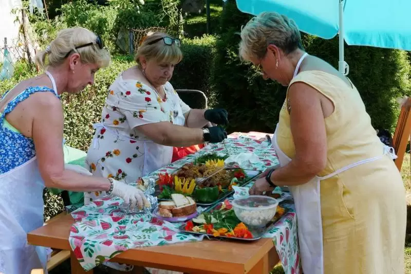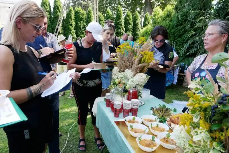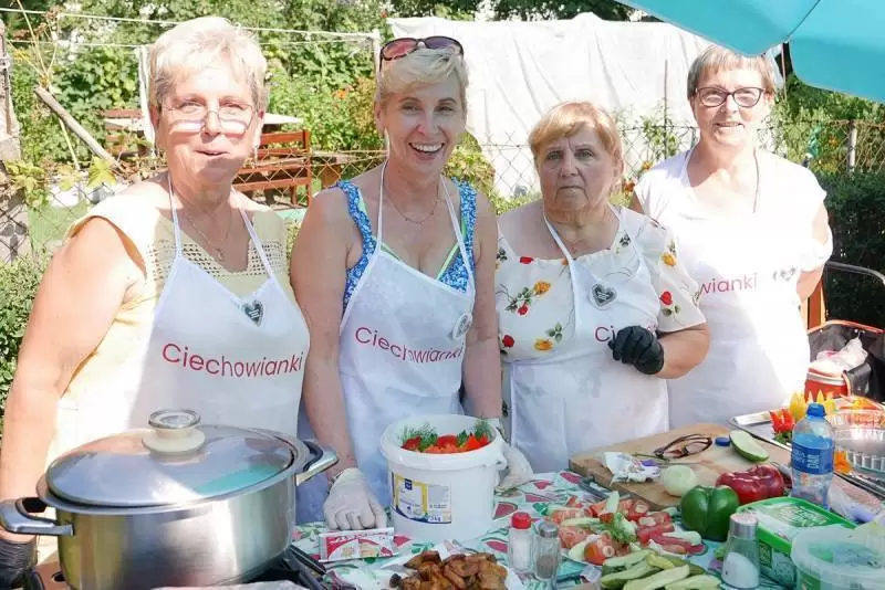 Na miejscu na rowerzystów czekała kiełbaska, owoce, smakowe lemoniady, a przede wszystkim pyszne dania serwowane przez uczestników konkursu. Wybór był różnorodny, bo pojawiały się zarówno potrawy tradycyjne, takie jak bigos, leczo i polędwiczki w sosie oraz te bardziej oryginalne, jak na przykład makaron ryżowy z dodatkami czy potrawka meksykańska. Komisja konkursowa stanęła przed nie lada wyzwaniem, jednak po zsumowaniu głosów zwyciężczyniami zostały panie z Koła Gospodyń Wiejskich w Szczepanowie, które do wspólnej zabawy powróciły po dłuższej przerwie - co bardzo nas cieszy.