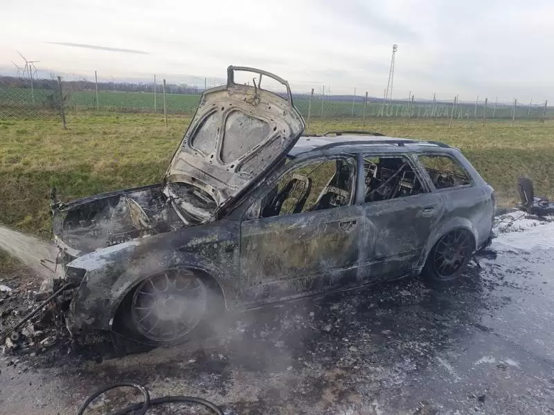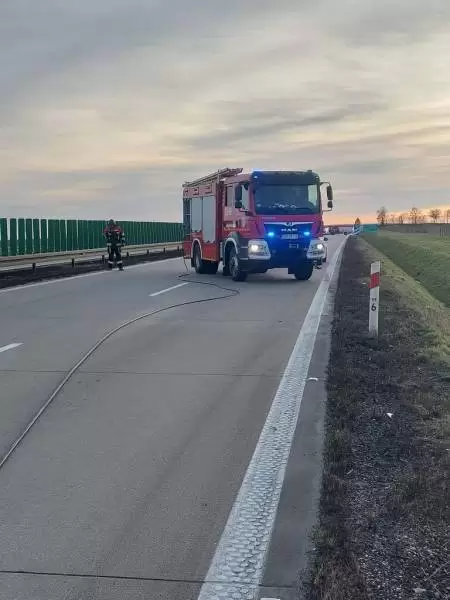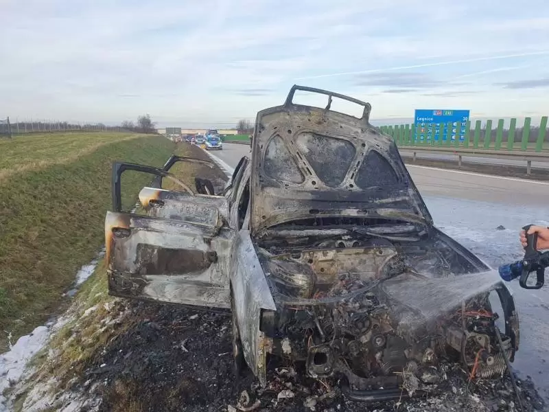Dziś przed południem Dyżurny Stanowiska Kierowania Komendanta Powiatowego Państwowej Straży Pożarnej w Środzie Śląskiej przyjął zgłoszenie o pożarze samochodu na 115 km autostrady A4.