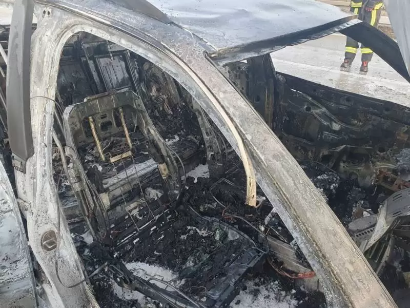 Po dojeździe pierwszych zastępów na miejsce zdarzenia cały pojazd objęty był pożarem. Niestety, mimo szybkiej reakcji cały samochód uległ spaleniu.