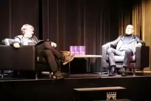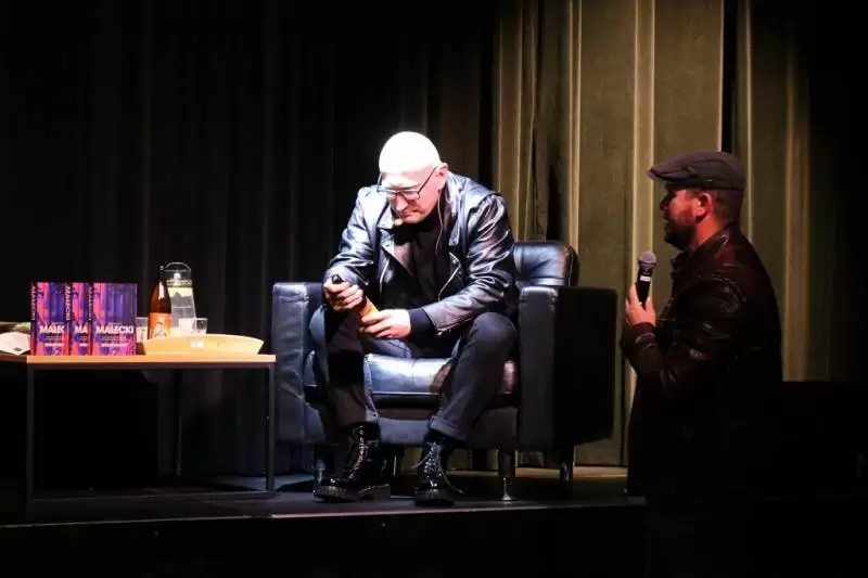 Podczas sympatycznej rozmowy obu panów publiczność dowiedziała się m.in. jaka była droga pana Małeckiego do wydania pierwszej książki, dlaczego tak radykalnie zmienia głównych bohaterów swoich powieści, dlaczego tak często wykorzystuje wątek tajemniczego zaginięcia, czy zdarza mu się niemoc twórcza, co czyta i jaki pisarz jest jego ulubionym.
