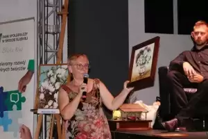 Gospodynią piątkowego wernisażu była Małgorzata Bogucka, która najpierw przybliżyła sylwetki i stopień pokrewieństwa pomiędzy członkami rodziny, a następnie delikatnie “odpytała” artystów. Publiczność, która bardzo licznie przybyła na wernisaż, dowiedziała się m.in. co skłoniło poszczególne osoby do zajęcia się twórczością, jak szukali najlepszej formy wyrażania siebie, ile czasu poświęcają swojej pasji, a także jak bogaty jest ich dorobek. – Moja przygoda z malowaniem zaczęła się ponad 30 lat temu. Postanowiłam namalować coś dla siebie, bo zawsze chciałam mieć dużo obrazów w domu. Ta praca bardzo spodobała się innej osobie. To było bardzo miłe i przekonało mnie do dalszego malowania. Na początku malowałam kredkami, później przeszłam na farby olejne. Z czasem zaczęłam malować portrety i one również zbierały pozytywne opinie – mówiła o swoich początkach seniorka rodu Mirosława Mróz.
