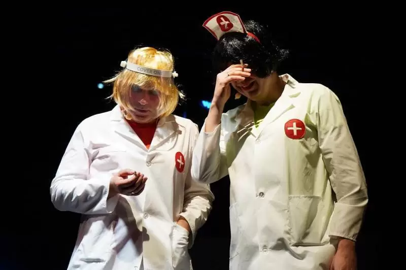 Przygotowania do spektaklu trwały rok, a sam termin premiery był wielokrotnie, głównie za sprawą pandemii, przekładany. Pierwsza część przedstawienia nawiązuje do znanej baśni Charles’a Perraulta, druga z „przymrużeniem oka” traktuje o czasach współczesnych - pandemii i służbie zdrowia. Obie części łączy postać śpiącej królewny.