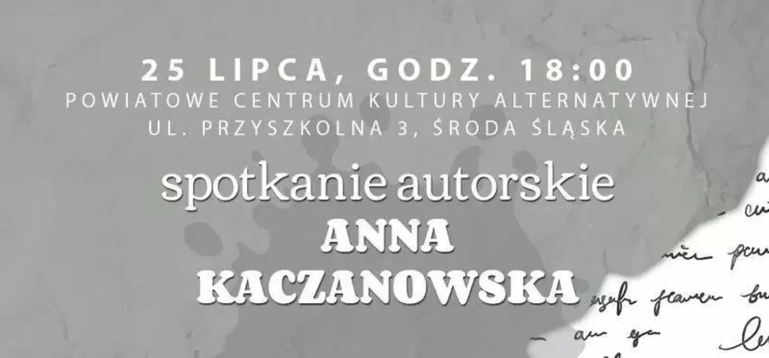 Biblioteka Publiczna w Środzie Śląskiej i Powiatowe Centrum Kultury Alternatywnej w Środzie Śląskiej mają przyjemność zaprosić miłośników literatury polskiej i kryminału na spotkanie autorskie z Anną Kaczanowską.