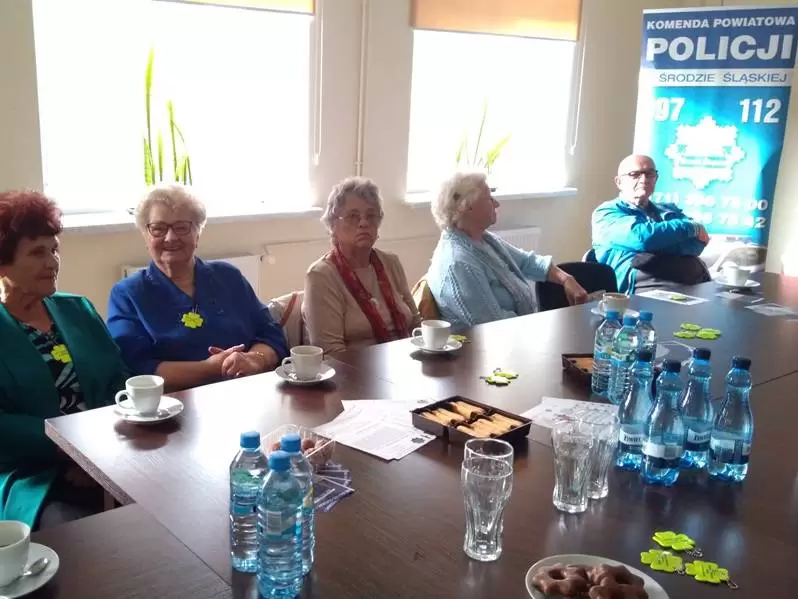 Mając na uwadze bezpieczeństwo seniorów oraz ich oszczędności, niekiedy całego życia, przedstawiciel Komendy Powiatowej Policji w Środzie Śląskiej omówił sposoby działania oszustów, którzy wykorzystując legendy „na wnuczka”, „na policjanta” itp., wyłudzają znaczne sumy pieniędzy. Policjantka przybliżyła słuchaczom metody stosowane przez bezwzględnych oszustów, również te dot. pozyskiwania wiedzy na temat członków rodziny. Zwróciła uwagę na formy manipulowania seniorami oraz wpływania na ich emocje stosowane przez fałszywych „wnuczków” w celu skłonienia osób starszych do przekazania osobom zupełnie obcym swoich oszczędności.