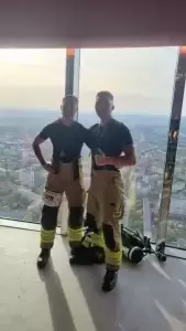 Średzcy strażacy na Mistrzostwach Polski w biegu po schodach - Sky Tower Run 2024