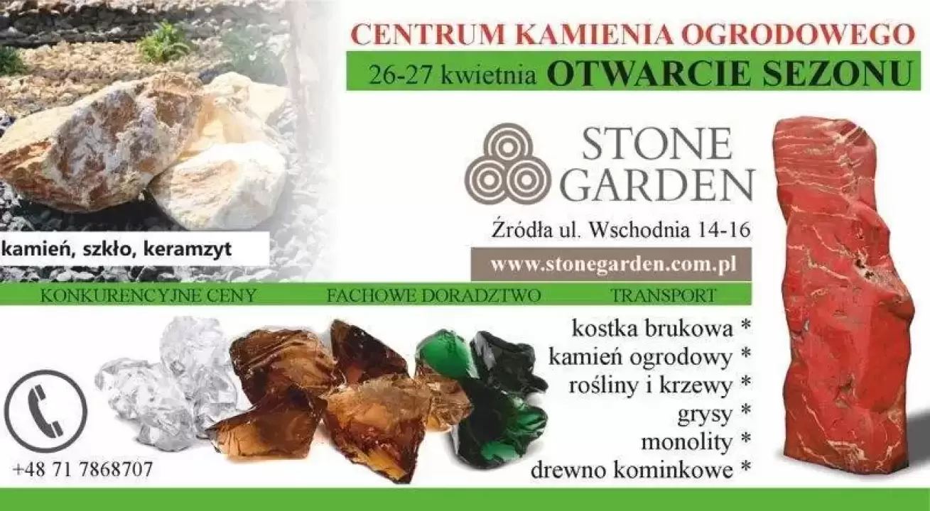 Nasze centrum ogrodowe Stone Garden znajduje się w miejscowości Źródła przy głównej drodze nr 94 pomiędzy Wrocławiem i Środą Śląską w województwie dolnośląskim.