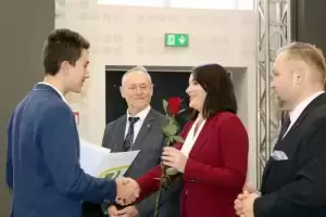 Zebranych przywitał wicestarosta Sebastian Burdzy. – Już 15 lat mam przyjemność uczestniczyć w uroczystości wręczenia powiatowych stypendiów. Takie dni jak dzisiejszy to jeden z przyjemniejszych aspektów pracy samorządowca. W tym roku stypendia otrzymało 26 uczniów, to rekordowa liczba, lecz bez wątpienia są to najlepiej wydane, a właściwie zainwestowane, pieniądze – mówił wicestarosta.
