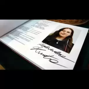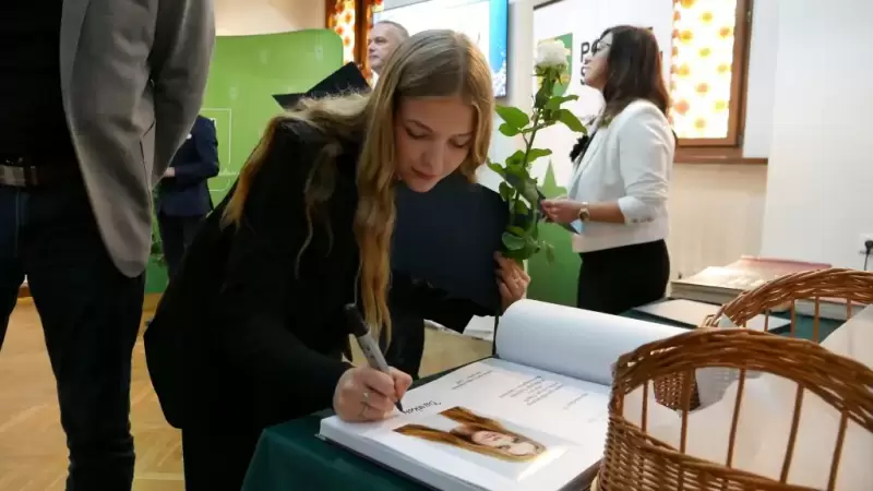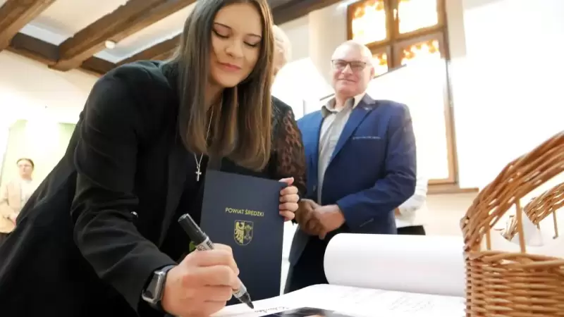 Stypendyści tradycyjnie wpisali się do Złotej Księgi Stypendystów Powiatu Średzkiego, która liczy już ponad 300 nazwisk.