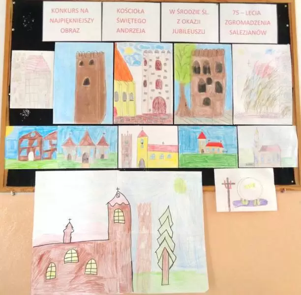 Przygotowano dwa konkursy – plastyczny i fotograficzny, aby upamiętnić wielkie święto zakonu, który sprawuje pieczę nad naszą szkołą od wielu lat. Tu przed laty katechizowali – ksiądz Adam i ksiądz Hieronim. Współpracowali z nami również księża Proboszczowie- ks. Stanisław, ks. Edward, ks. Wiesław i ks. Marcin oraz księża – Bartłomiej i Marek.