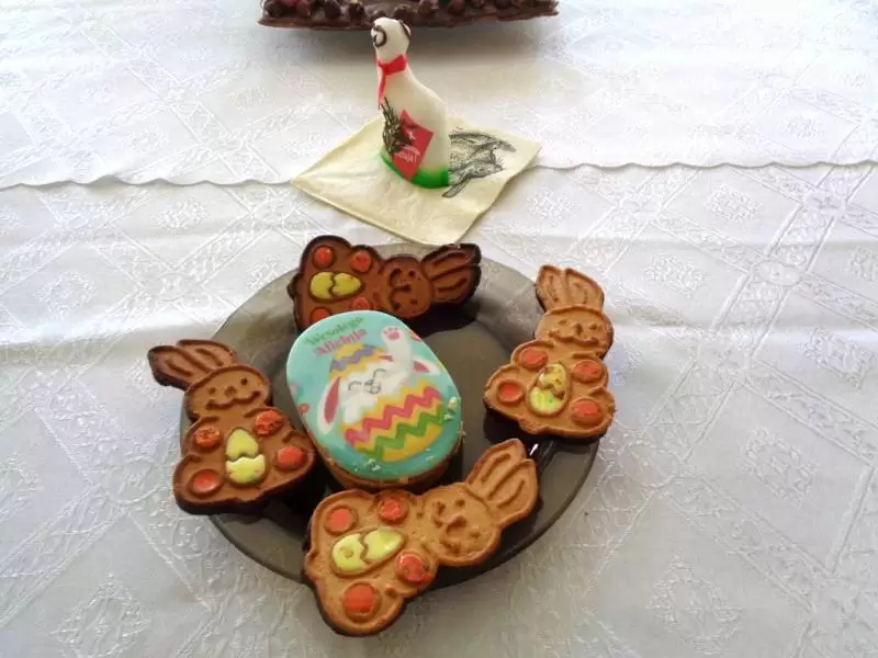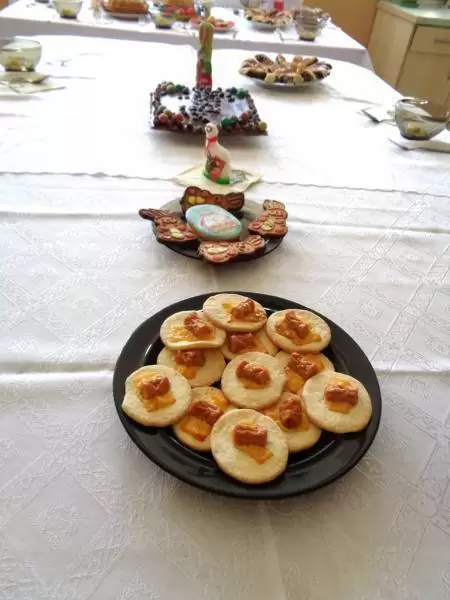 Na odświętnie udekorowanych stołach nie zabrakło tradycyjnych wielkanocnych specjałów: wielkanocnego baranka, kraszanek, żurku z białą kiełbasą, zapiekanych parówek na kruchym cieście, sałatek warzywnych oraz słodkości - kajmakowego mazurka, lukrowanej babki wielkanocnej, makowca na cieście francuskim, czekoladowych zajączków, cukrowych baranków, ciasteczek zdobionych lukrem, glazurą i czekoladą. Wszystkie potrawy przygotowali członkowie koła pod czujnym okiem opiekunów - pani Ewy i pana Pawła.