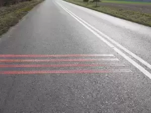 Po montażu radarowych wyświetlaczy prędkości i progów zwalniających Powiat rozpoczął malowanie oznakowania poziomego na swoich drogach.