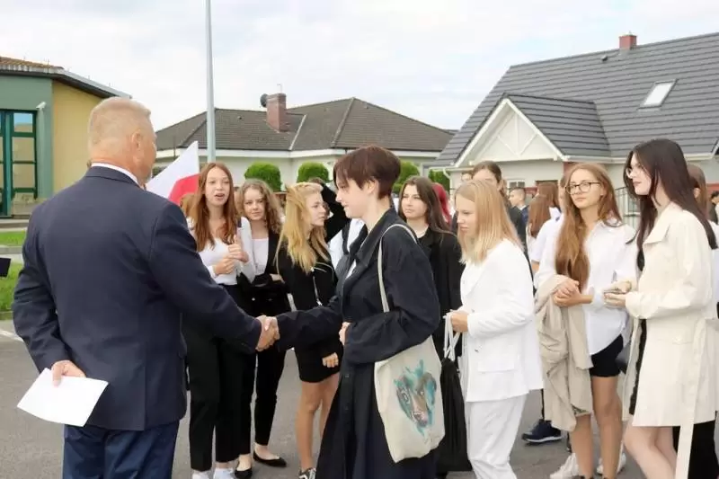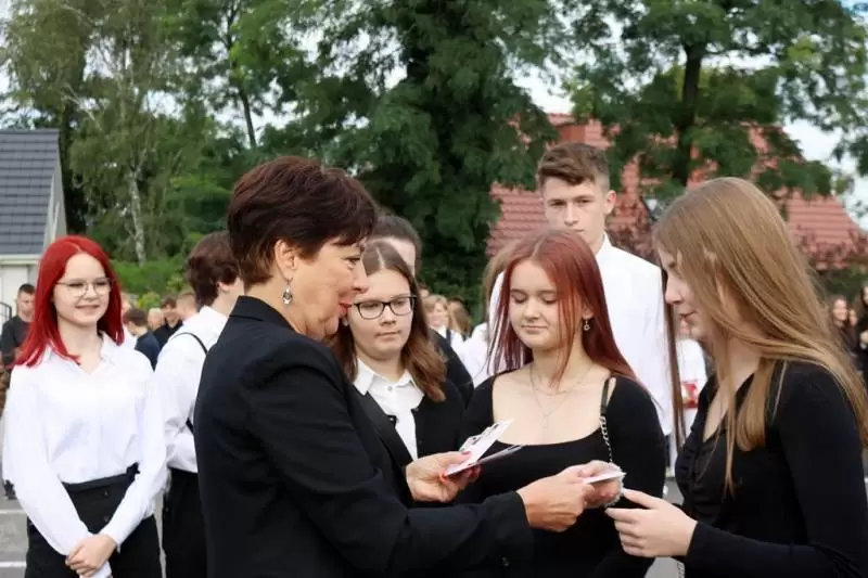 Szczególnie ciepło powitano pierwszoklasistów oraz liczną grupę uczniów z Ukrainy. Maturzystom i uczniom technikum przystępującym do egzaminu zawodowego już teraz życzono połamania piór i jak najlepszych wyników na egzaminach. Życzenia sukcesów na wielu płaszczyznach, satysfakcji i radości ze zdobywania wiedzy przekazała uczniom również Halina Mikła, przewodnicząca komisji oświaty w Radzie Powiatu w Środzie Śląskiej, której towarzyszyła skarbniczka Elżbieta Czarnota.