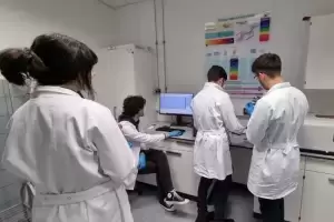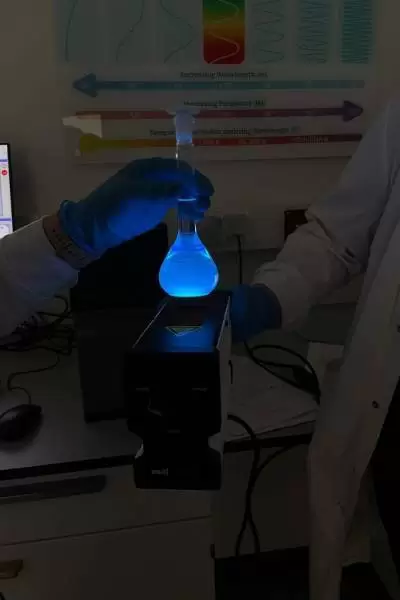 Maturzyści spędzili łącznie w Polskim Ośrodku Rozwoju Technologii dwa dni - piątek 18 listopada oraz piątek 25 listopada. W trakcie zajęć omówili tematy spektroskopii i analizy widmowej. - W laboratorium zaczęli od działań matematycznych, dzięki którym mogli stworzyć odpowiednie mieszaniny, obecne w dalszych doświadczeniach. Różne stężenia roztworu zostały poddane na działanie światła UV, przez co dostrzeżono charakterystyczny fluorescencyjny, niebieski kolor. Praca i nabyta wiedza uczniów została sprawdzona, podczas wyznaczania krzywych wzorcowych na bazie pomiarów - opisują pierwszy dzień w ośrodku opiekunowie uczniów, Barbara Honc i Dariusz Muchorowski.