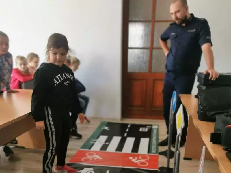 Dzieci odwiedziły jednostkę policji, gdzie miały możliwość przyjrzenia się codziennej pracy policjantów. Zwiedzanie rozpoczęto od stanowiska kierowania, gdzie dzieci zobaczyły obowiązki służby dyżurnego oraz jego zastępcy. Kolejnym punktem było zwiedzanie pomieszczenia dla osób zatrzymanych, do którego dzieci wchodziły z dużą ostrożnością jednogłośnie deklarując, że nigdy nie chciały by tam trafić.