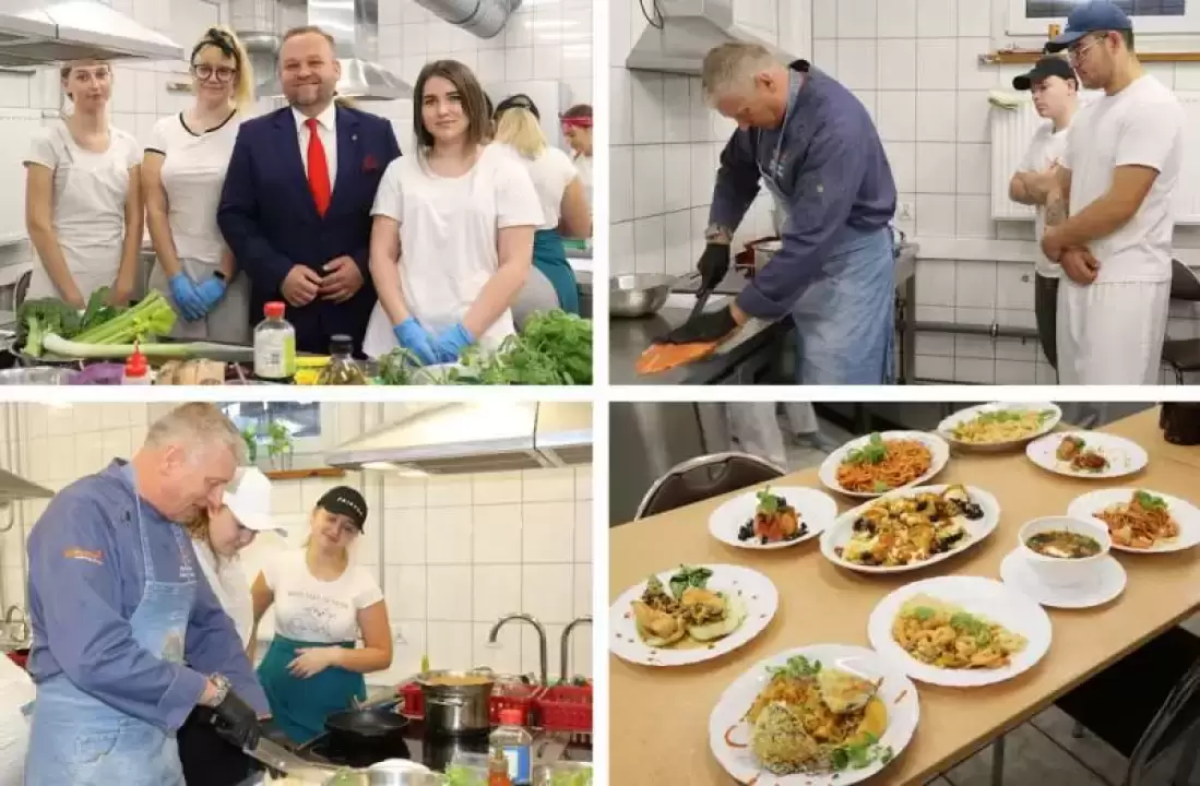 Warsztaty poprowadził kucharz Paweł Filipiak i dyrektor regionalny Dariusz Drukarczyk, którzy przyjechali do szkoły na zaproszenie kierownika Wydziału Edukacji, Kultury i Zdrowia Wojciecha Mielińskiego.