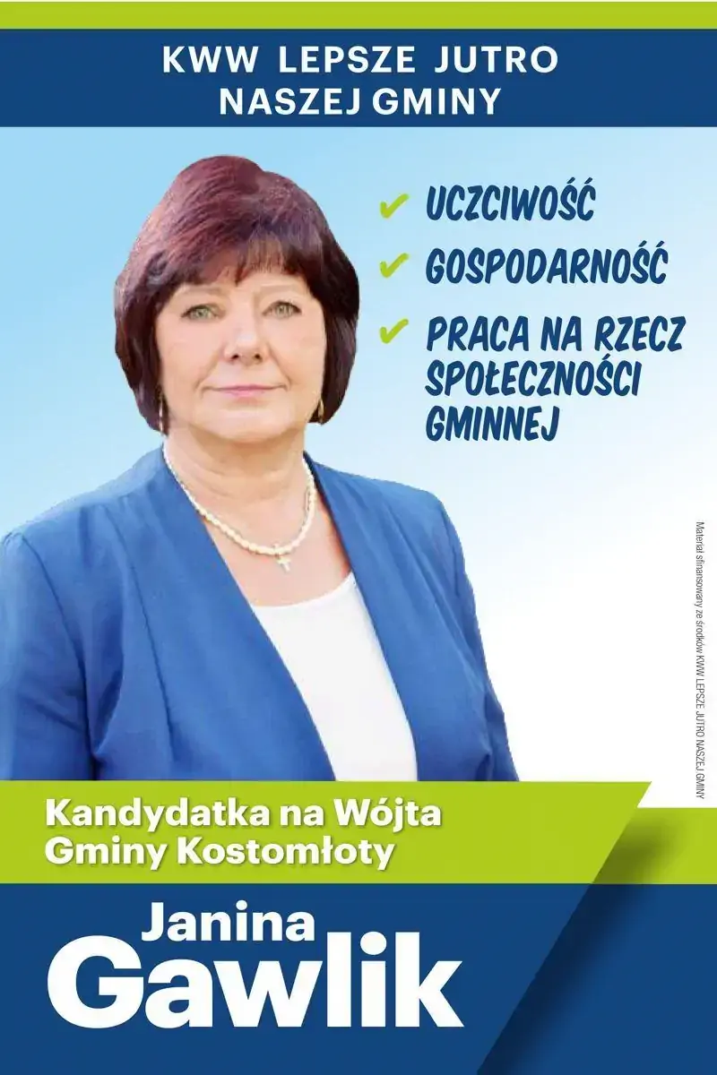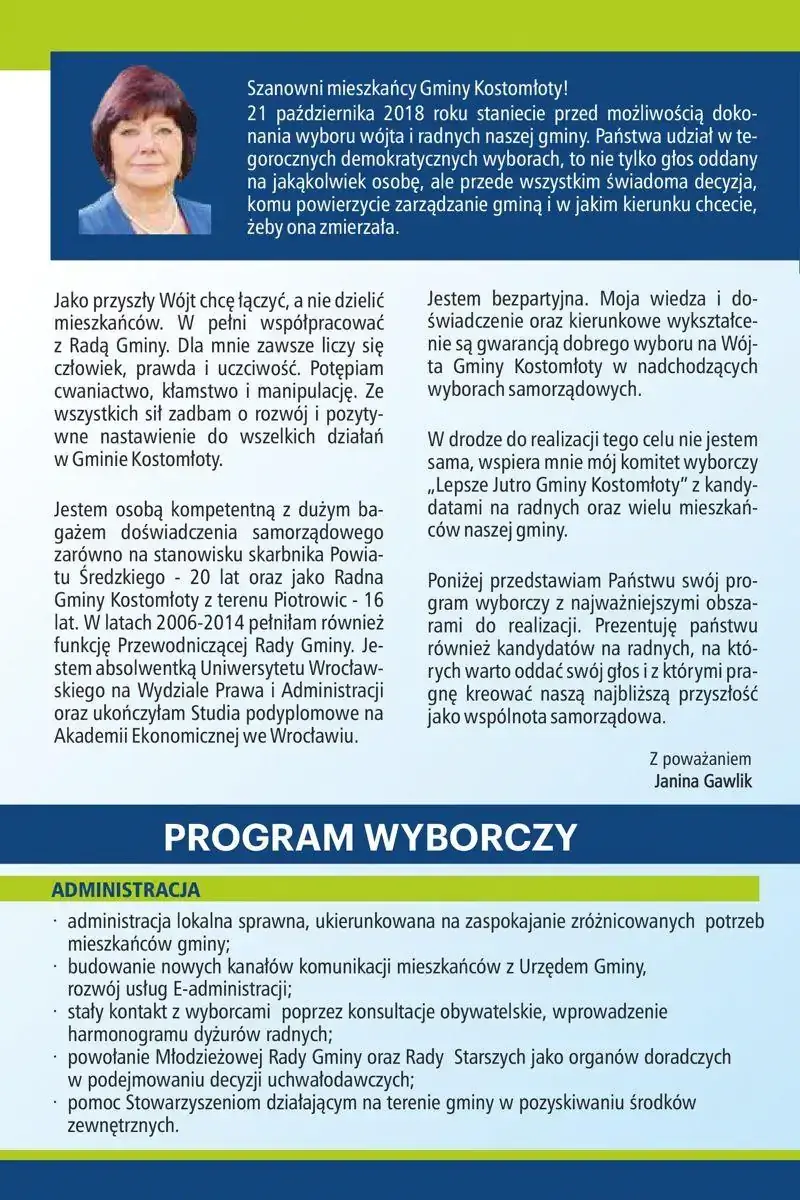 Janina Gawlik - kandydatka na wójta gminy Kostomłoty