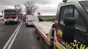 Dziś po południu, na drodze krajowej nr 5 w okolicach miejscowości Gościsław, doszło do zderzenia dwóch samochodów osobowych.