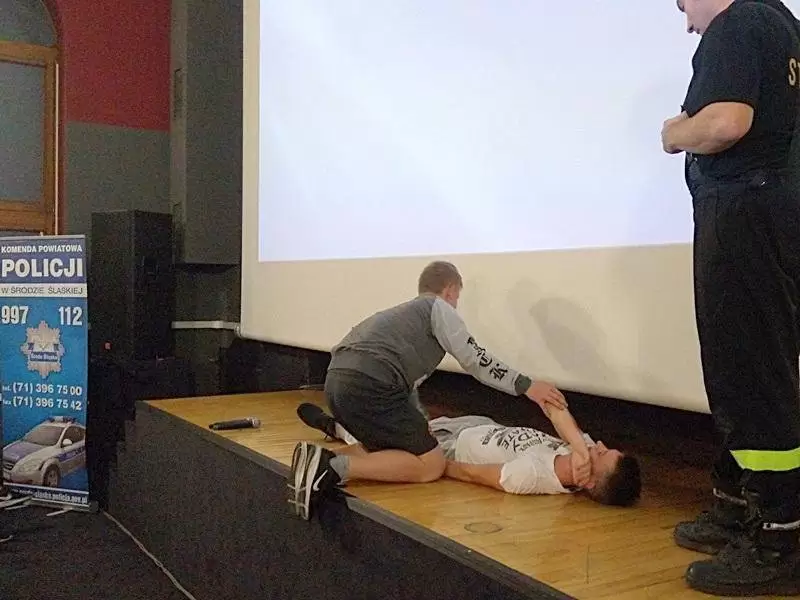 Do udziału w projekcie zaproszono funkcjonariusza Państwowej Straży Pożarnej młodszego ogniomistrza Sławomira Wilczyńskiego, który w niezwykle ciekawy i przystępny dla młodych osób sposób przedstawił kolejne etapy właściwego postępowania na miejscu zdarzenia wraz z powiadomieniem służb ratunkowych oraz udzielaniem pierwszej pomocy medycznej.