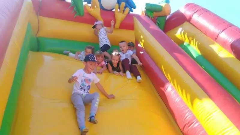 - W czerwcu otrzymaliśmy voucher z okazji Dnia Dziecka na skorzystanie z dmuchanego placu zabaw, ale dopiero teraz mogliśmy z tego skorzystać. Świetna zabawa i super nastroje towarzyszyły przedszkolakom przez cały dzień. Jeszcze raz składamy serdeczne podziękowania dla władz starostwa za tak miłą niespodziankę - dziękują pracownicy przedszkola.