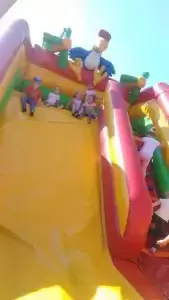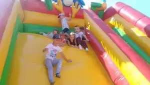 Zabawa na dmuchanym placu zabaw w prezencie od starostwa