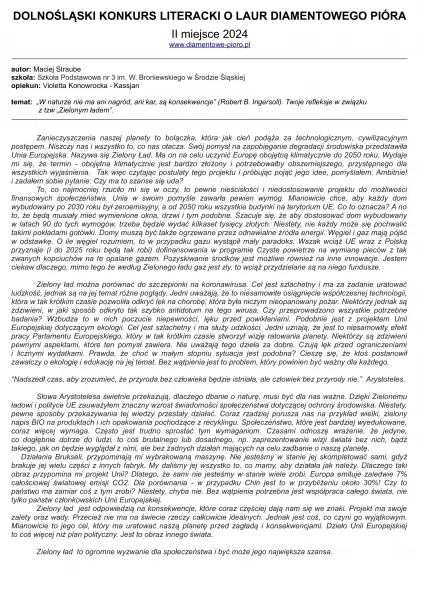 Dla Macieja Straubego ze Szkoły Podstawowej nr 3 im. Władysława Broniewskiego w Środzie Śląskiej nie tylko ważni są inni ludzie (czego dowodem jest jego prężna działalność w Samorządzie Uczniowskim i w Młodzieżowej Radzie Miejskiej), ale i ważkie sprawy tego świata.